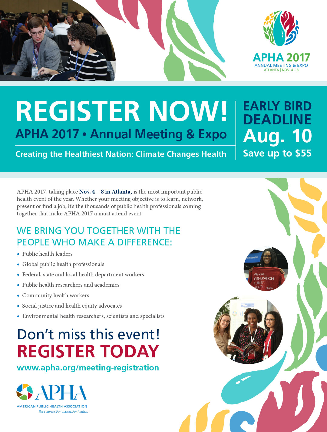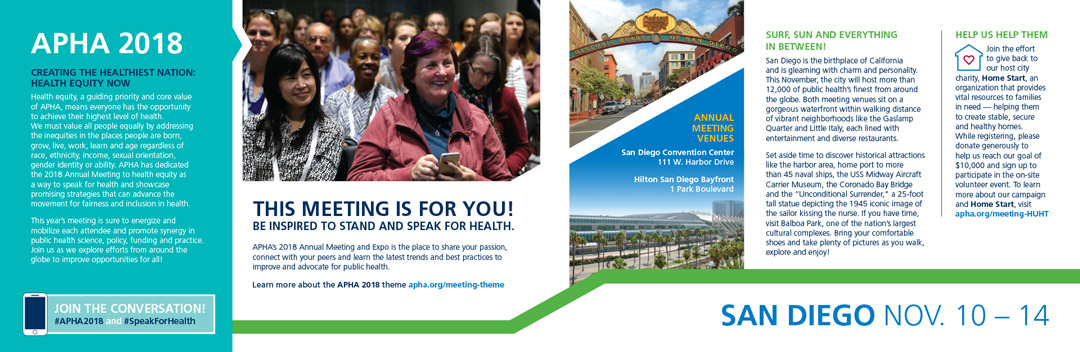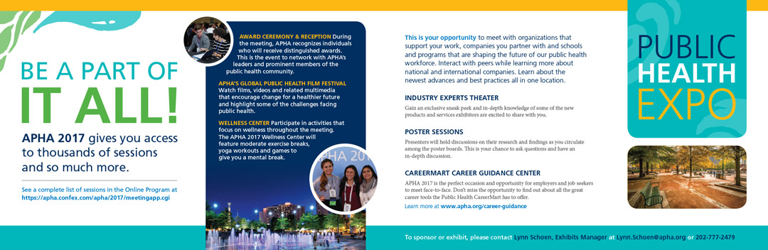 APHA Deliverables Logos Prospectus Email Banners Promo Booklets Program Guides Ads Tote Bag Designs Postcards Client APHA champions the health of all people and communities and speaks out for public health issues and policies backed by science. Email Banners Highlights Booklets Back to our work Back to our work
