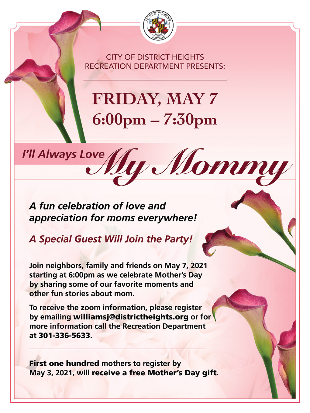 The City of District Heights is a municipality in Maryland. The Recreation Department provides information and hosts activities and events for the community.