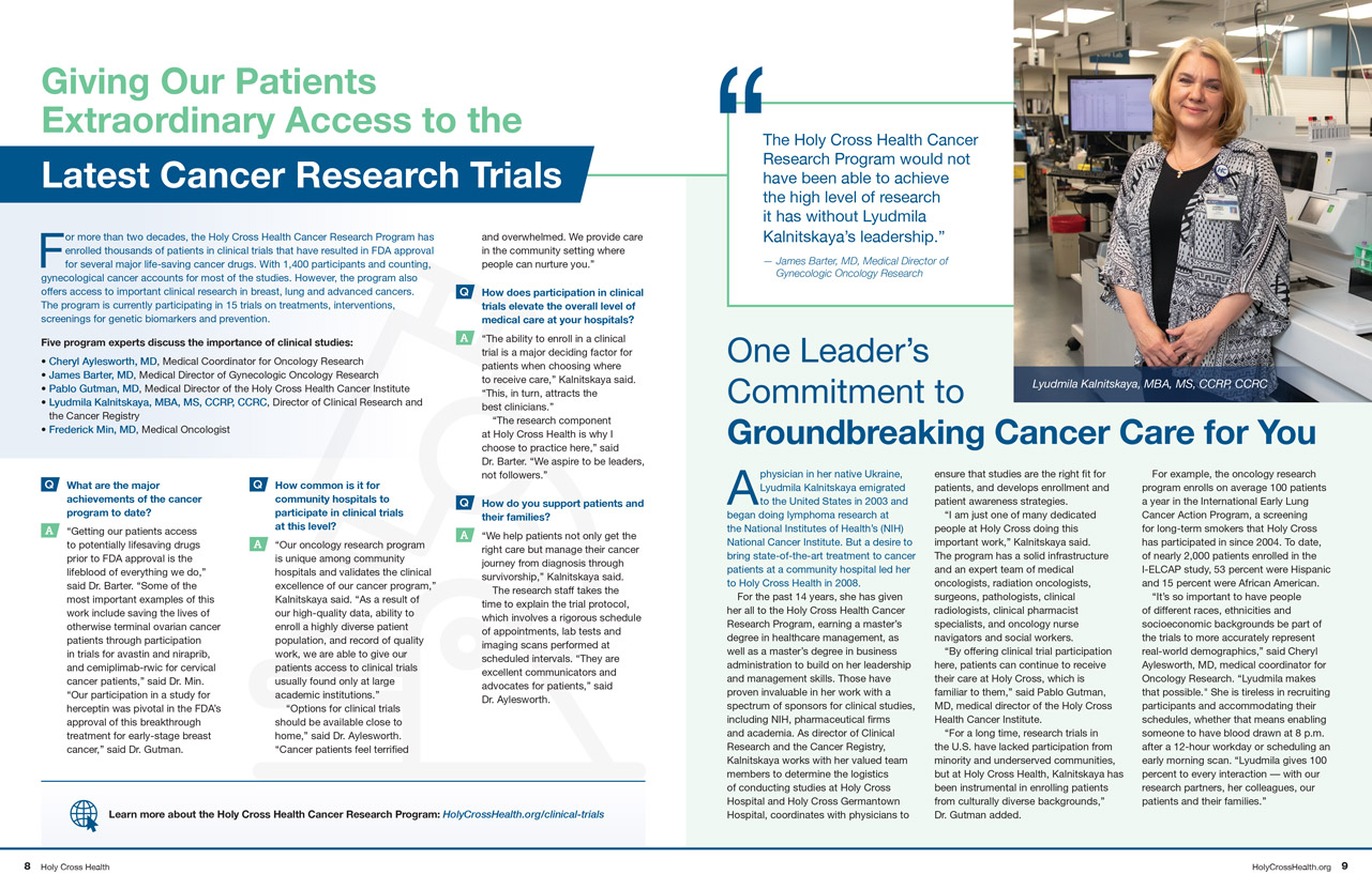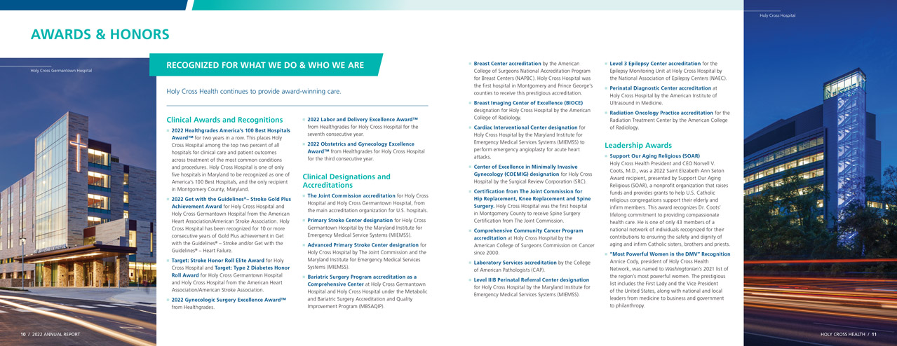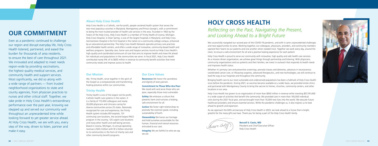Holy Cross Health Deliverables Magazines Annual Reports Client Holy Cross Health is a not-for-profit health system that serves individuals from Maryland’s two largest counties. Magazines Annual Reports Back to our work Back to our work