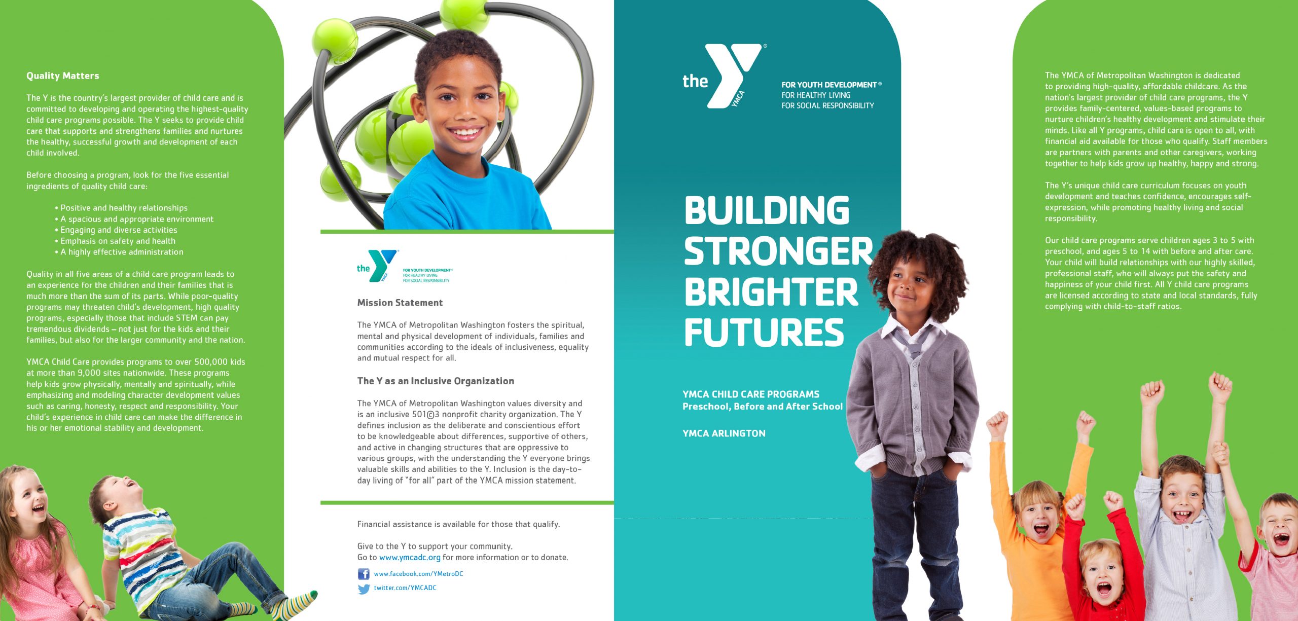 YMCA Deliverables Brochures Booklets Flyers Posters Mailing Campaigns Client The YMCA is a nonprofit committed to strengthening community, improving the health and well-being of people of all ages and inspiring action in and across communities. Brochure Covers Back to our work Back to our work